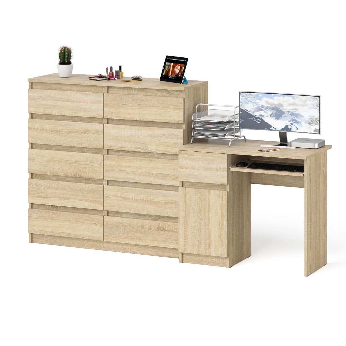 Отзывы о Столплит Комод Мори МК1200 на 10-ть ящиков и компьютерный стол МС-1 левый Дуб Сонома