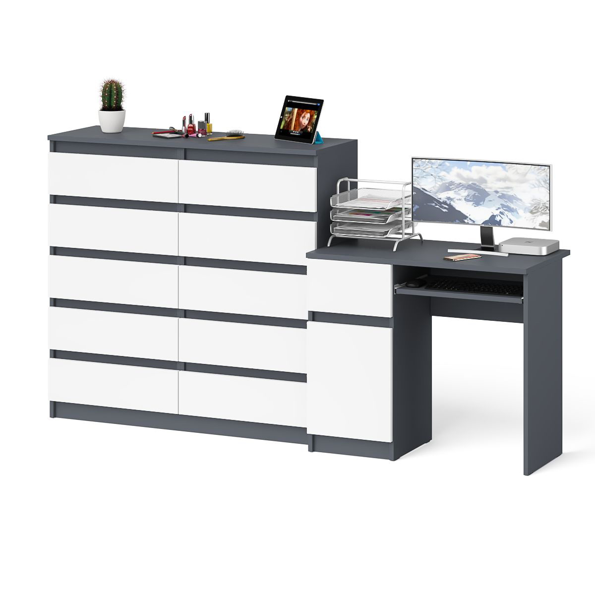 Отзывы о Столплит Комод Мори МК1200 на 10-ть ящиков и компьютерный стол МС-1 левый Графит/Белый