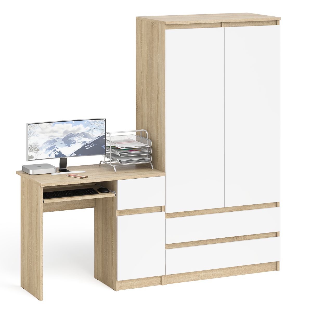 Отзывы о Столплит Шкаф-комод Мори МШ900 2 ящика с компьютерным столом МС-1 правым Мори Дуб Сонома, Белый