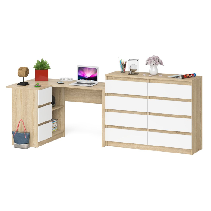 Отзывы о Столплит Стол компьютерный МС-16 левый с комодом МК1200 8-мь ящиков Мори Дуб Сонома, Белый