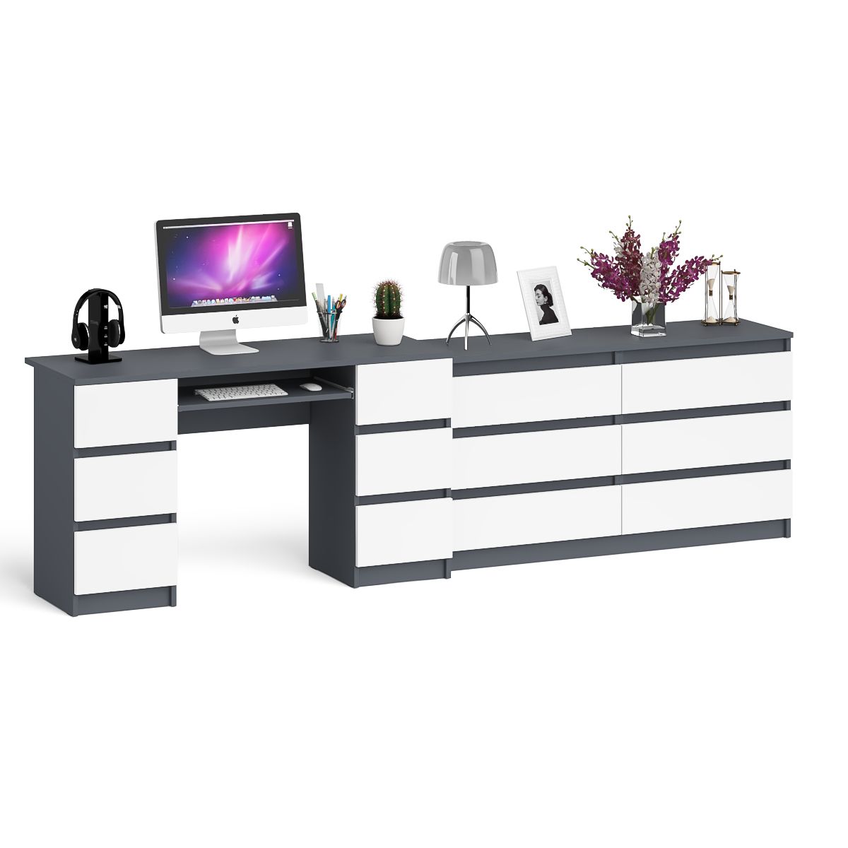 Отзывы о Столплит Стол компьютерный МС-2 на шесть выдвижных ящиков и комод МК1380 Мори Графит/Белый