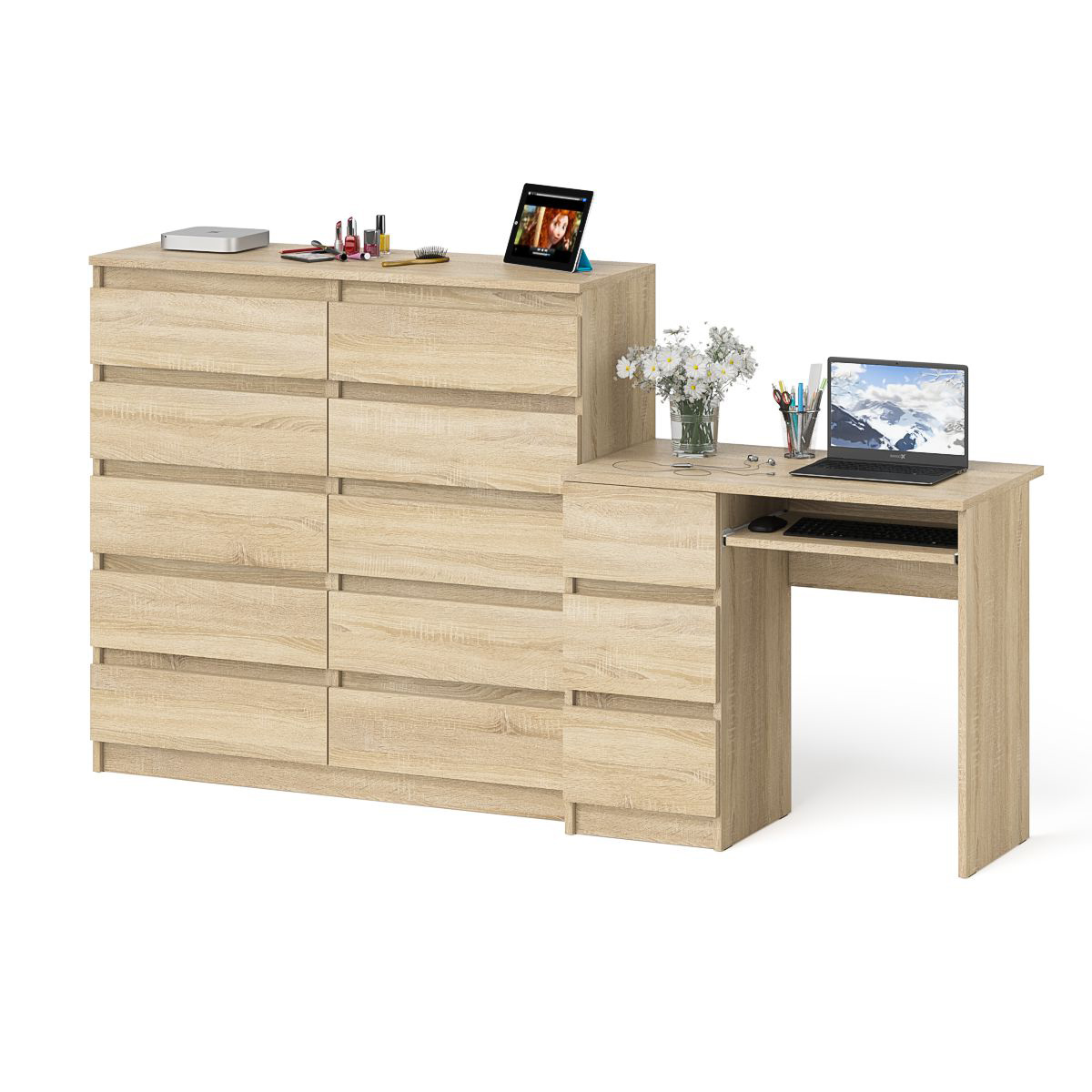 Отзывы о Столплит Компьютерный стол с тремя выдвижными ящиками левый с комодом 10-ть ящиков Мори Дуб Сонома