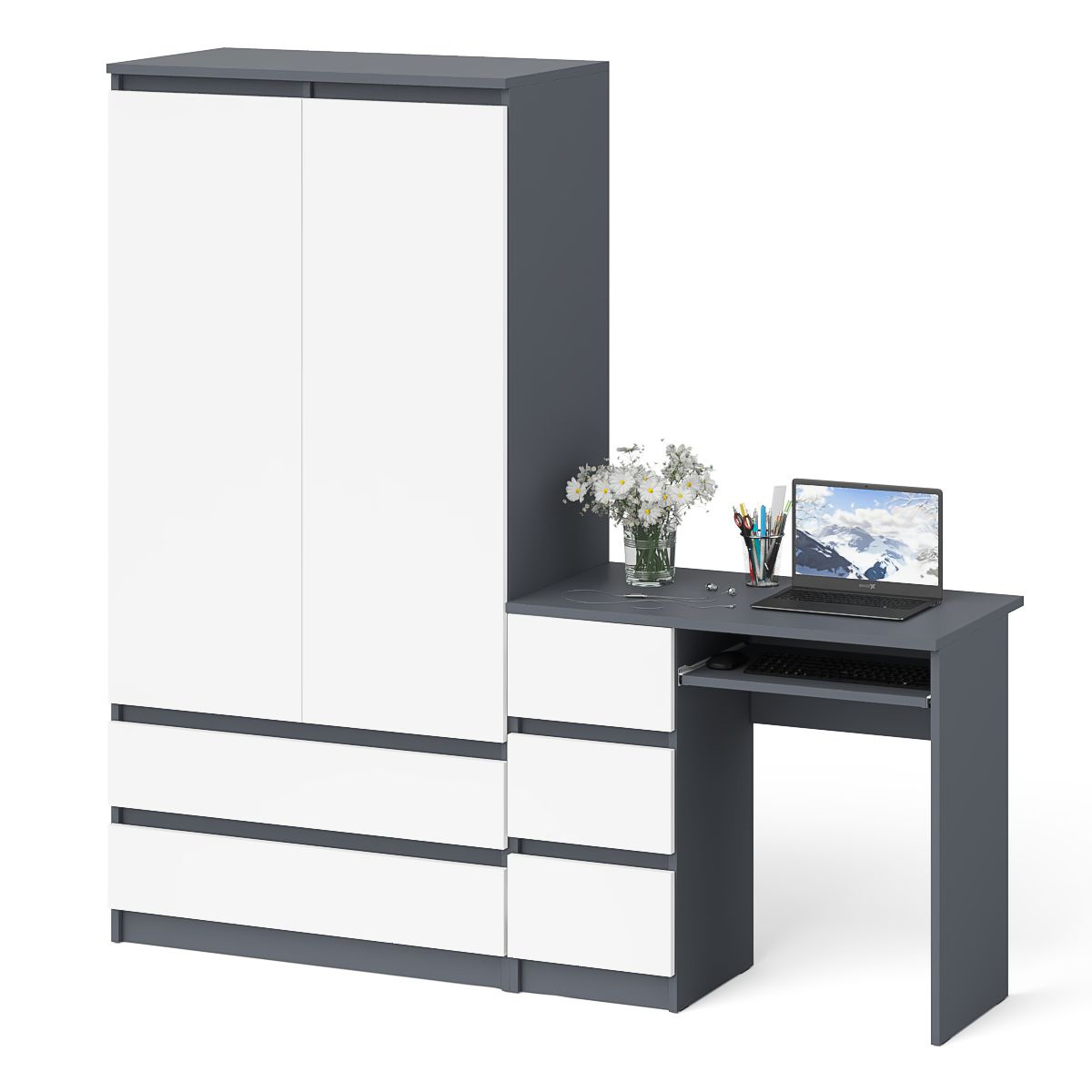 Отзывы о Столплит Стол компьютерный с тремя ящиками слева и шкаф-комод МШ900 три ящика и две двери Мори Графит/Белый