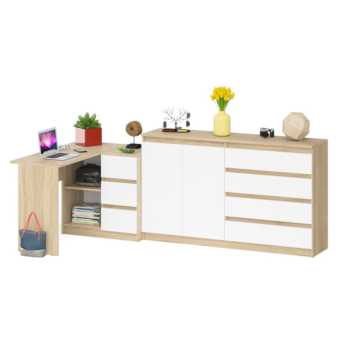 Отзывы о Столплит Стол угловой компьютерный МС-16 правый с комодом-тумбой МК-1600 Мори Дуб Сонома, Белый