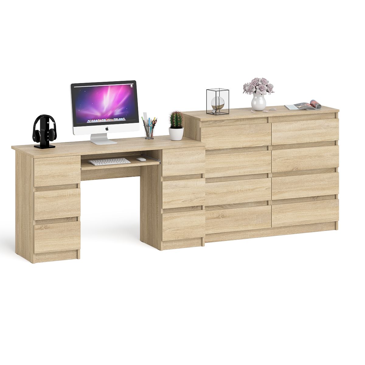 Отзывы о Столплит Стол компьютерный МС-2 ящики слева и справа и комод МК1200 8 ящиков Мори Дуб Сонома