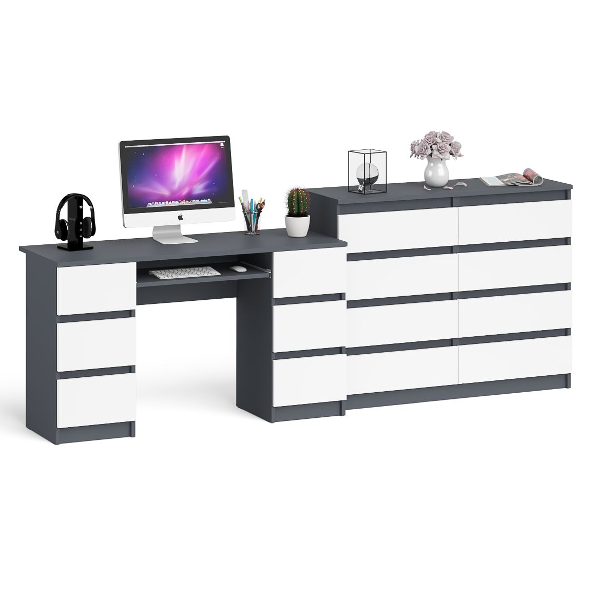 Отзывы о Столплит Стол компьютерный МС-2 ящики слева и справа и комод МК1200 8 ящиков Мори Графит/Белый