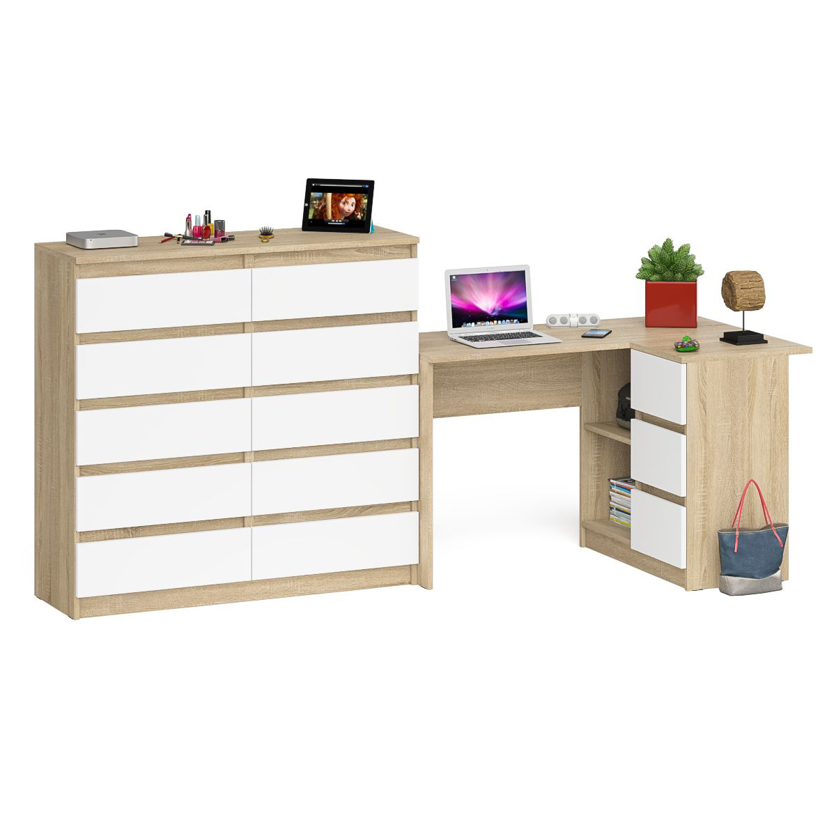 Отзывы о Столплит Стол компьютерный МС-16 с тумбой справа и высокий комод на 10-ть ящиков Мори Дуб Сонома, Белый