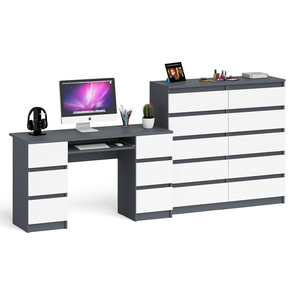 Отзывы о Столплит Компьютерный стол с панелью для клавиатуры МС-2 с комодом МК-1200 10 ящиков Мори Графит/Белый