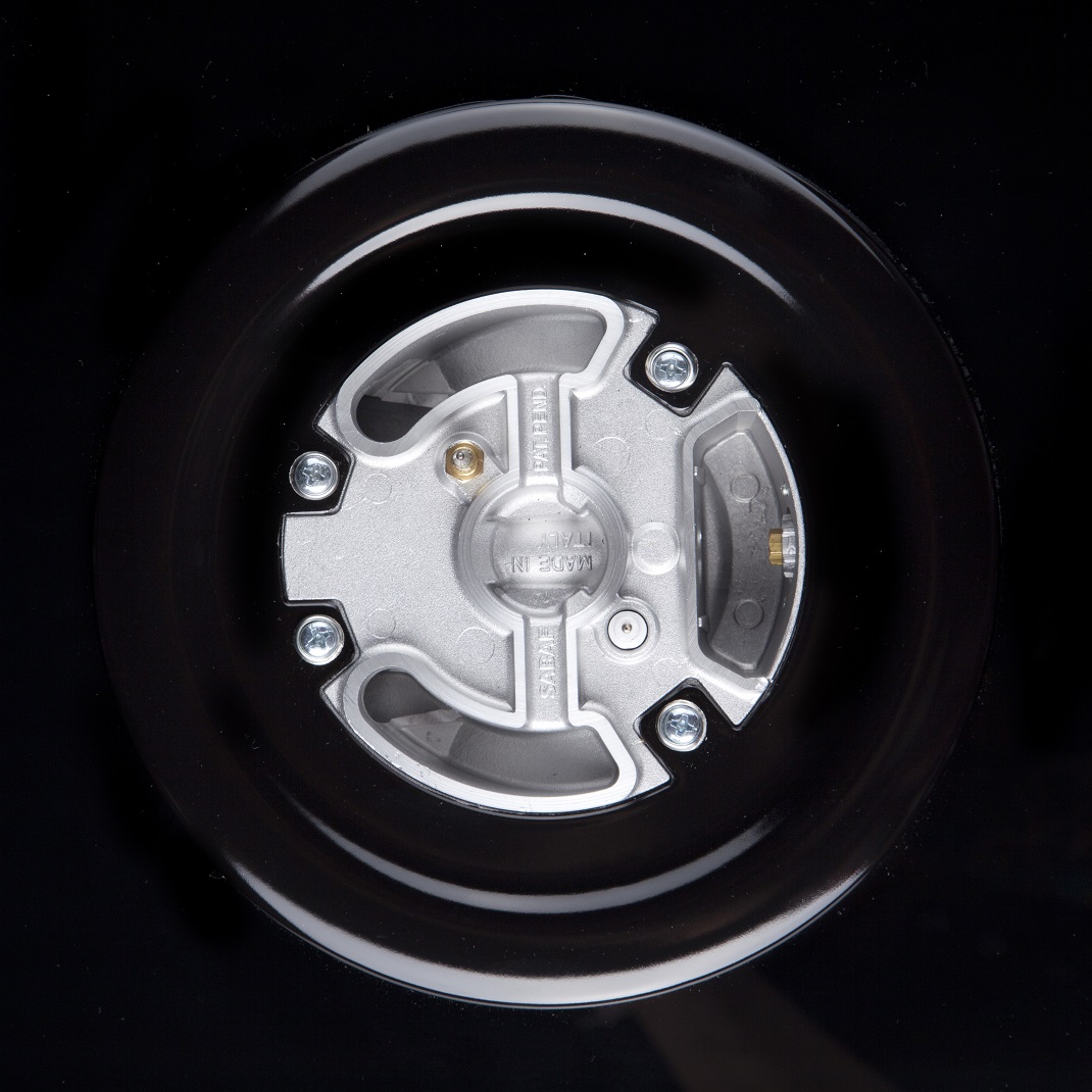 • Тяжелые цельнометаллические ручки управления с отделкой термостойким пластиком в цвете варочной панели