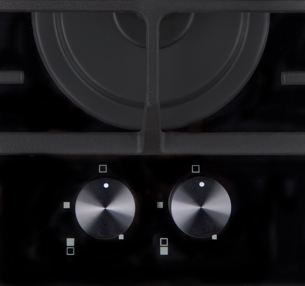 • Массивные чугунные решетки высокого качества исполнения. Удобная и безопасная система фиксации решеток на стекле. Множественные боковые опоры (подставки) и сплошное крестообразное соединение над всеми конфорками позволяют свободно и безопасно передвигать посуду по всей площади чугунной решетки