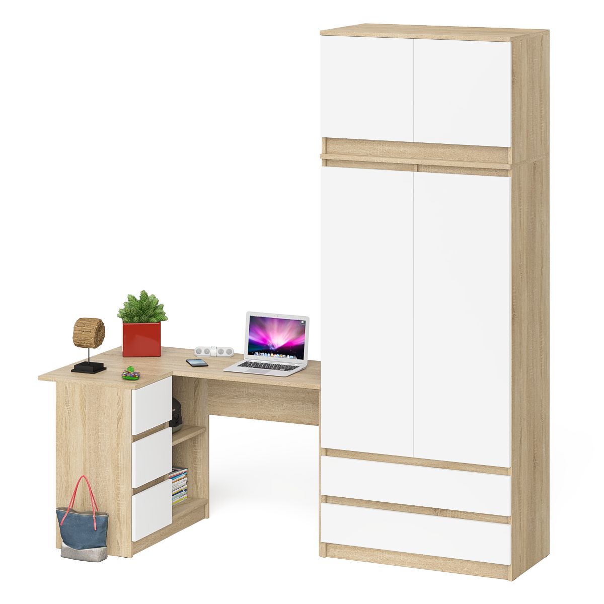 Отзывы о Столплит Компьютерный угловой стол - тумба слева со шкафом-комодом и антресолью Мори Дуб Сонома, Белый
