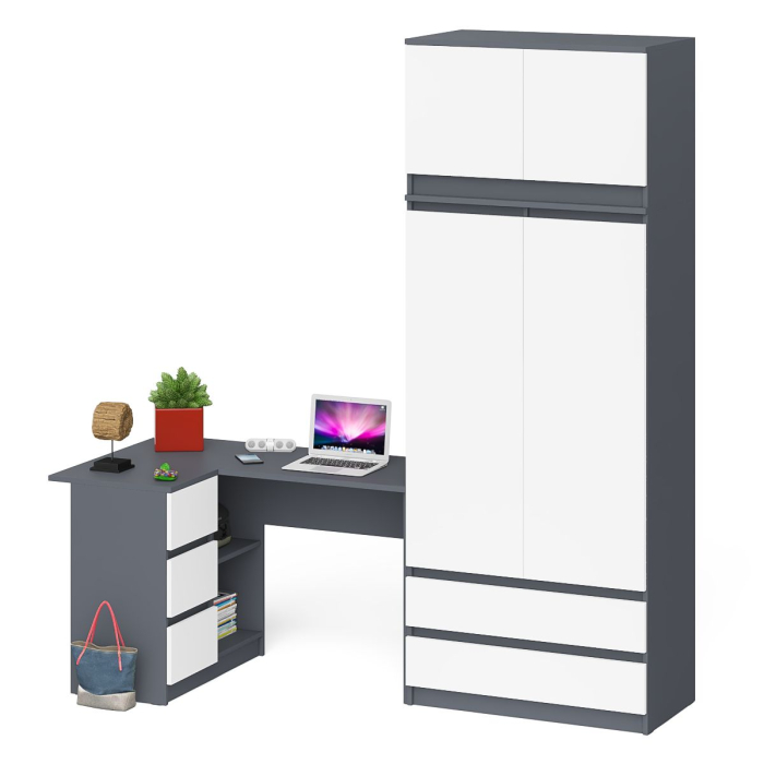 Отзывы о Столплит Компьютерный угловой стол - тумба слева со шкафом-комодом и антресолью Мори Графит/Белый