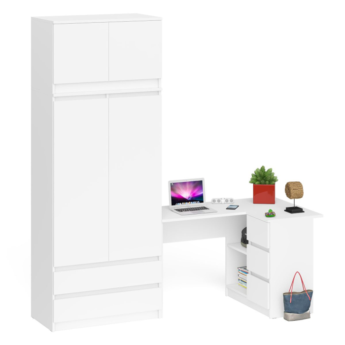 Угловой компьютерный стол - тумба справа со шкафом-комодом и антресолью Мори - минималистичный дизайн и доступная цена позволяет наслаждаться качественной и современной мебелью без значительных финансовых затрат!