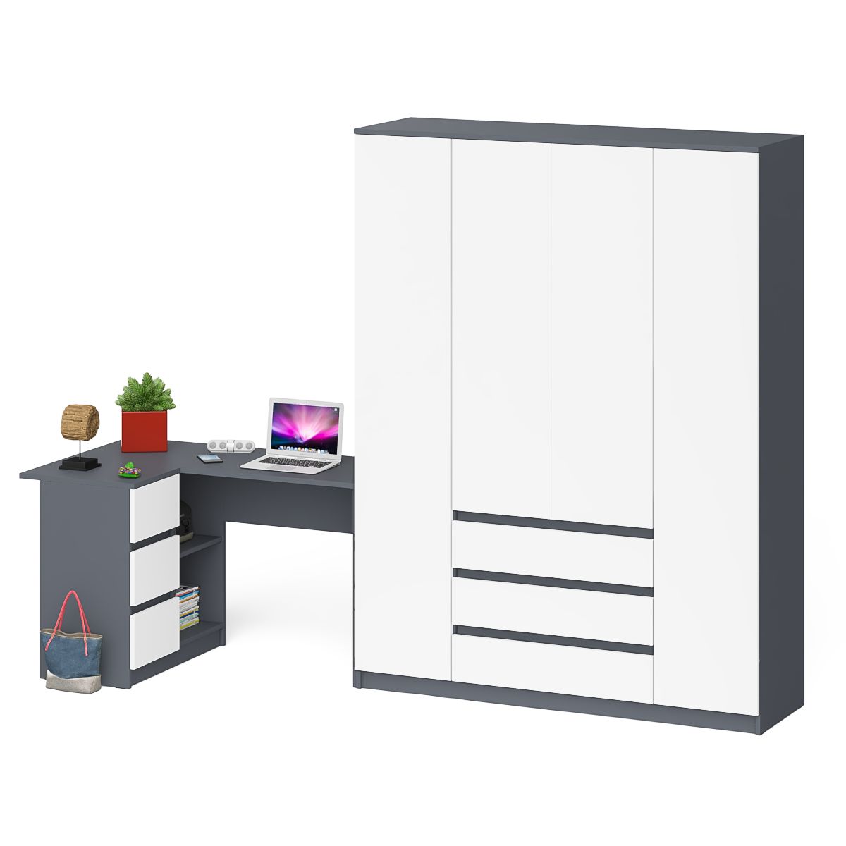 Отзывы о Столплит Стол компьютерный угловой с тумбой слева и шкаф 1600 Мори Графит/Белый
