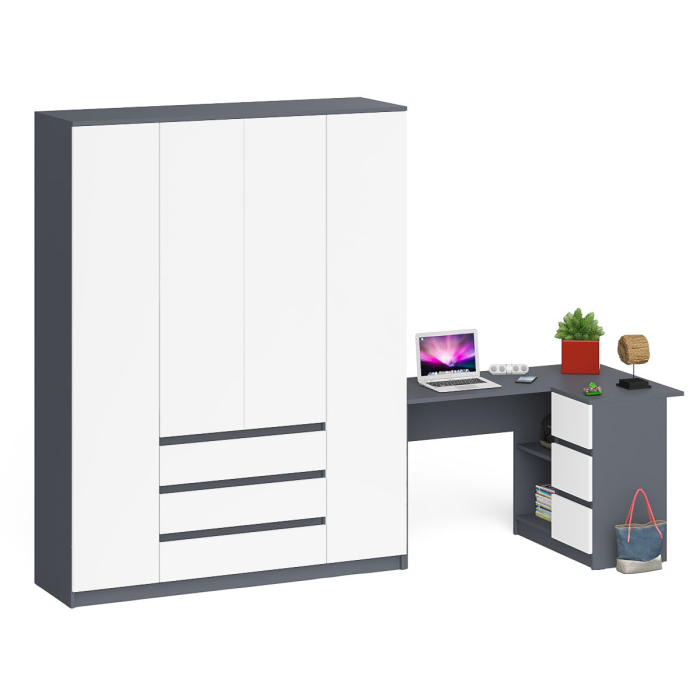 Стол компьютерный угловой с тумбой справа и шкаф 1600 Мори (Графит/Белый) Код I0000382336