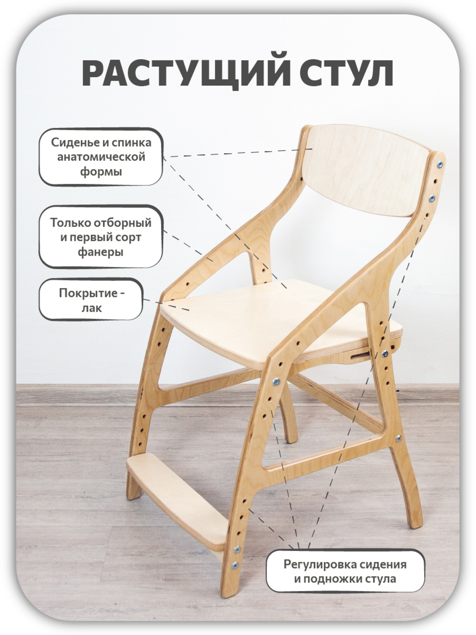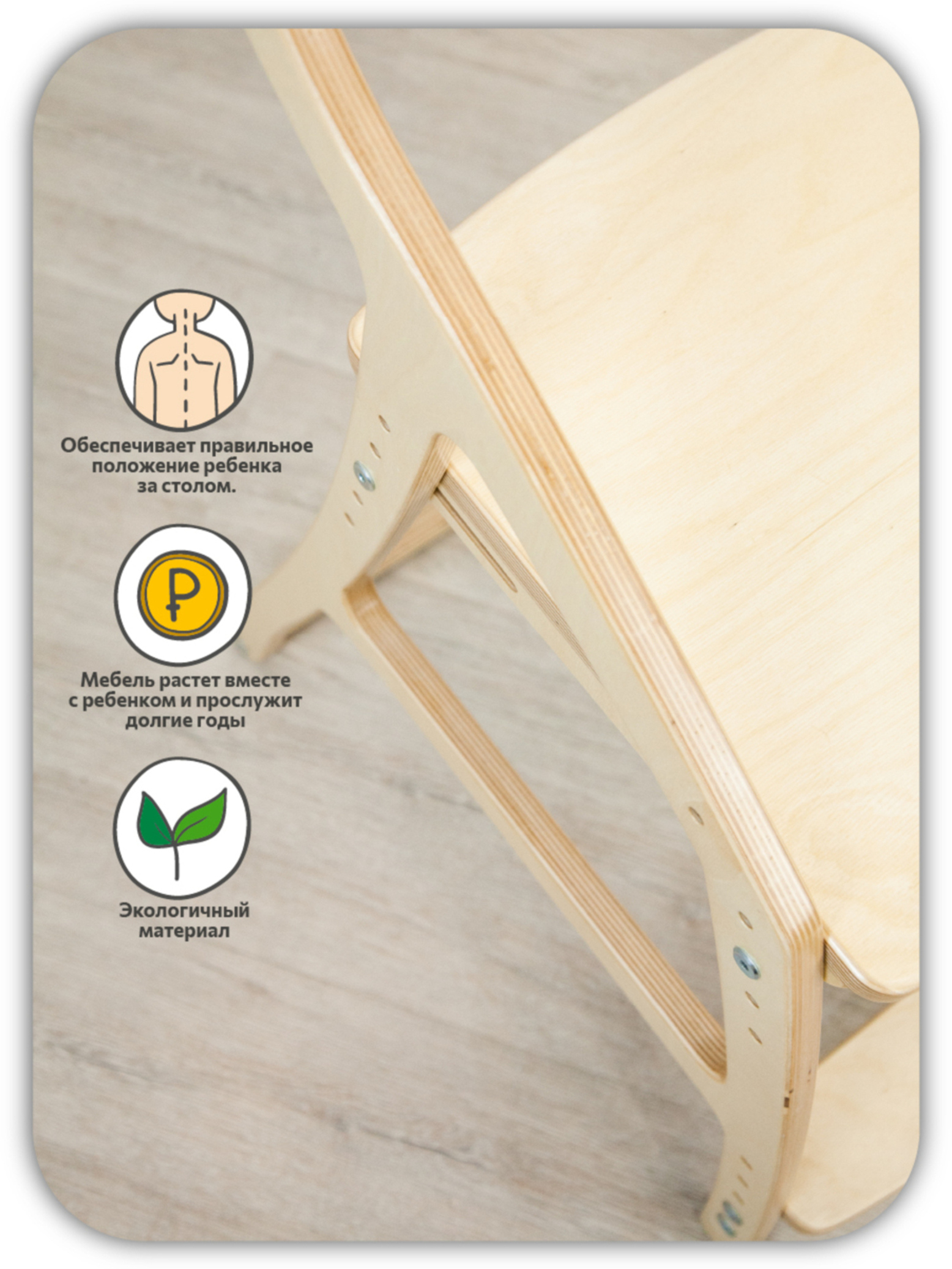 Стул детский регулируемый по высоте (растущий) Максимальная нагрузка 100 кг. Береза. Безопасно для детей.