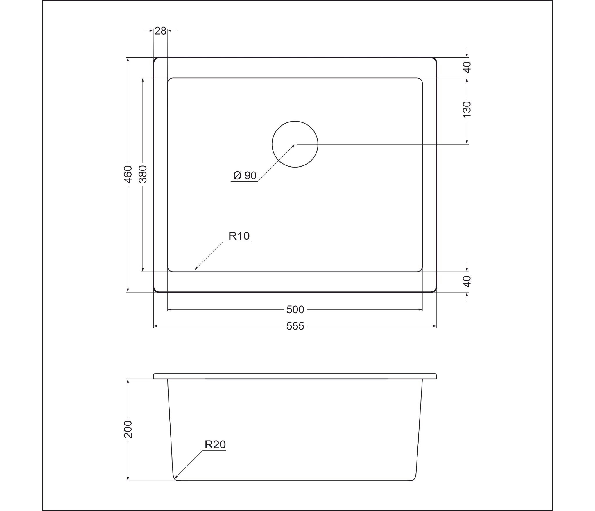 Габаритные размеры мойки 580 x 500 мм. Крыло: 190 мм. Способ монтажа - врезной.