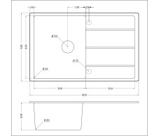 • Размеры мойки: 800 x 500 х 200мм