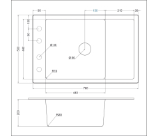 • Размеры мойки: 780 x 500 х 200мм
