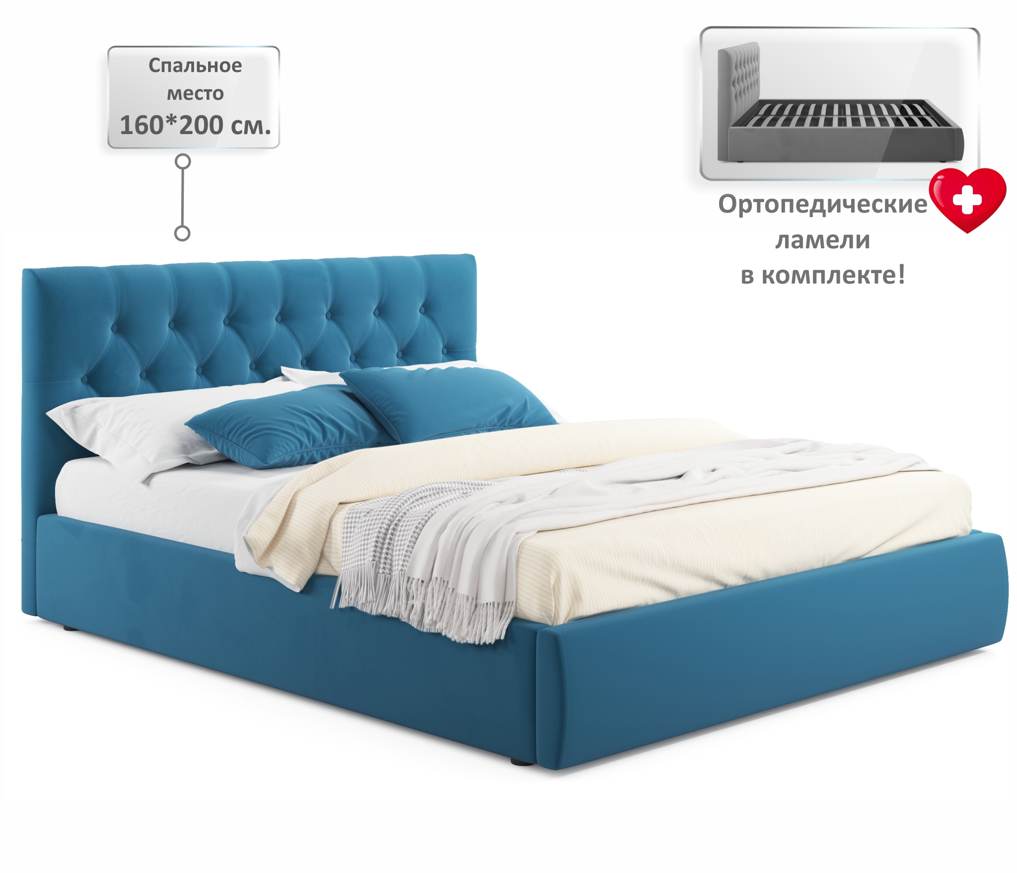 Кровать имеет размеры 2140х1010х850мм и размер спального места 900х2000 мм.