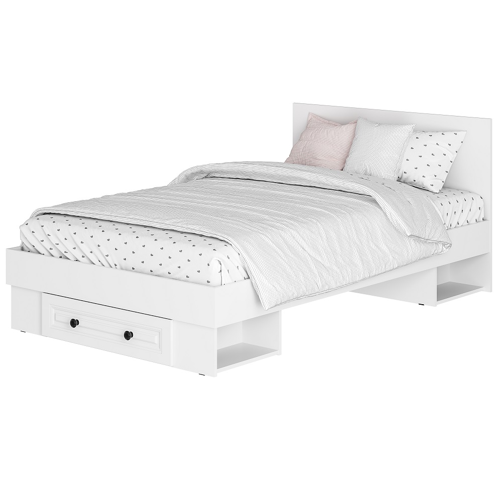 Стильная и удобная для ежедневного сна и отдыха кровать Софт подойдет как для небольшой, так и для просторной спальни. Наличие выдвижного ящика и открытых ниш позволит разместить постельное белье и вещи, которые необходимо иметь под рукой перед сном и после пробуждения.