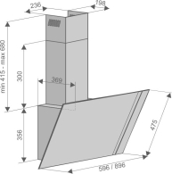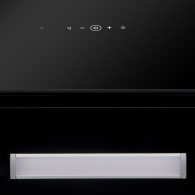 • Пристенная вытяжка с плоским углом наклона. Стильное сочетание полоски из нержавеющей стали обработки «сатин» и закаленного стекла
