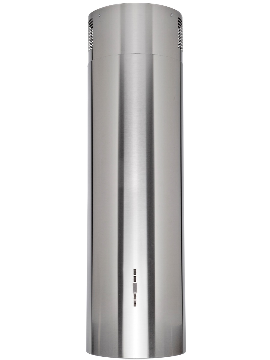 + Вытяжка выполнена в форме цилиндра. Геометрические формы повсеместно используется в современных дизайнерских проектах, они ассоциируются с простотой и лаконичностью, привносят в помещение гармонию и стиль. Стильное сочетание стали и блеска закаленного стекла создают ощущение легкости прочной конструкции. Декоративный стеклянный люк скрывает алюминиевый, жироулавливающий фильтр, придавая завершенность композиции