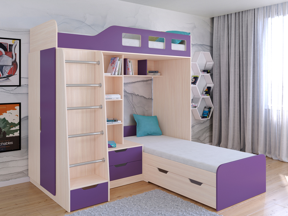 Отзывы о Столплит Кровать двухъярусная Астра 4 Дуб молочный Фиолетовый