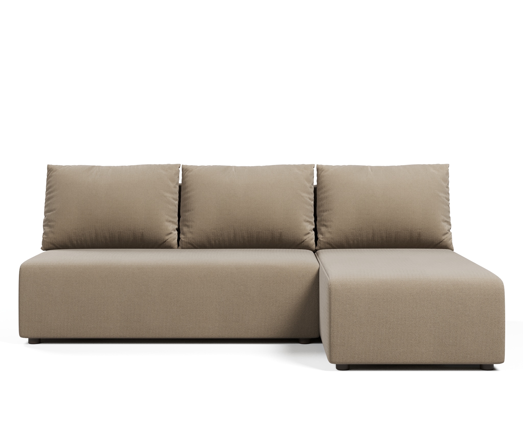 Угловой диван Каир выполнен в минималистичном стиле. Диван подойдет и для маленьких помещений, так как в модели отсутствуют подлокотники, которые сокращают пространство вокруг.