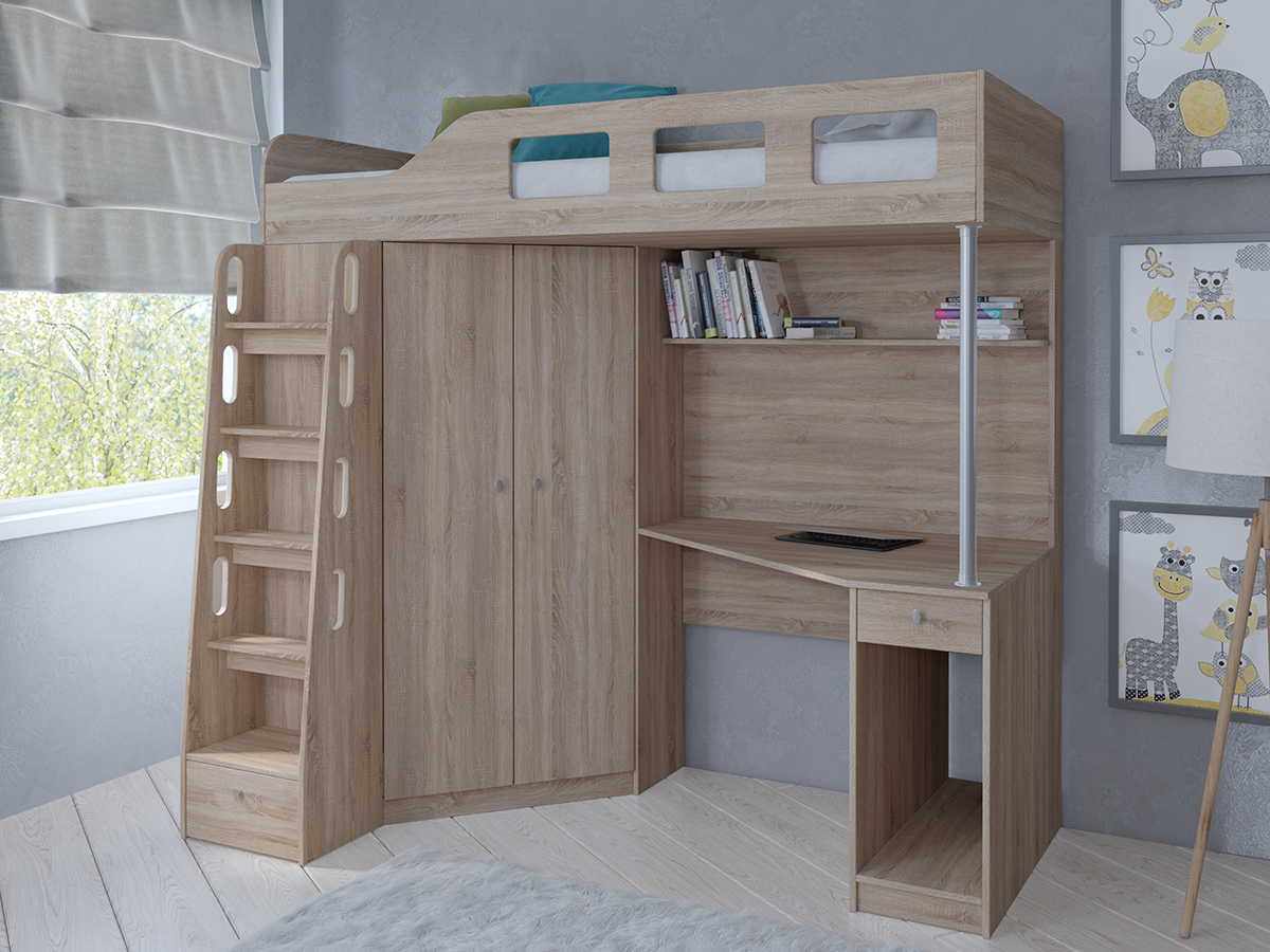 Кровать-чердак Астра 7 Дуб Сонома (Дуб сонома)