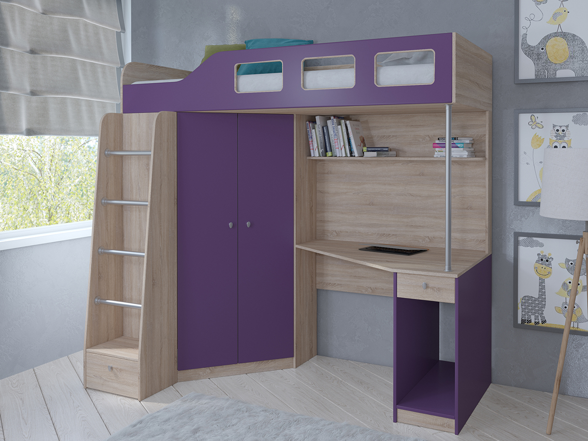 Отзывы о Столплит Кровать-чердак Астра 7 Дуб Сонома Фиолетовый