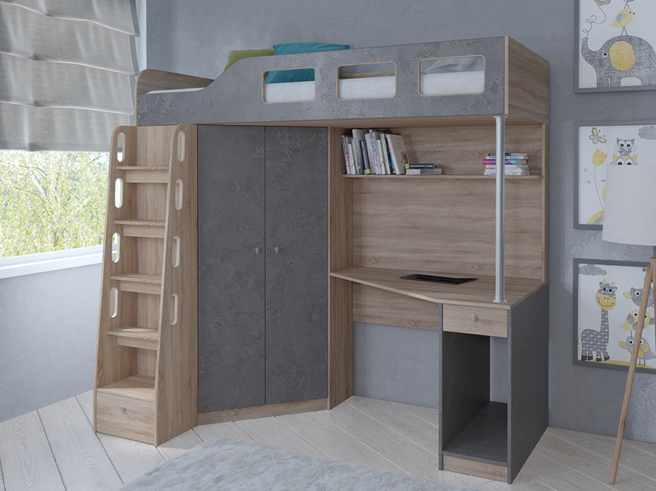 Кровать-чердак Астра 7 Дуб Сонома (Железный камень)