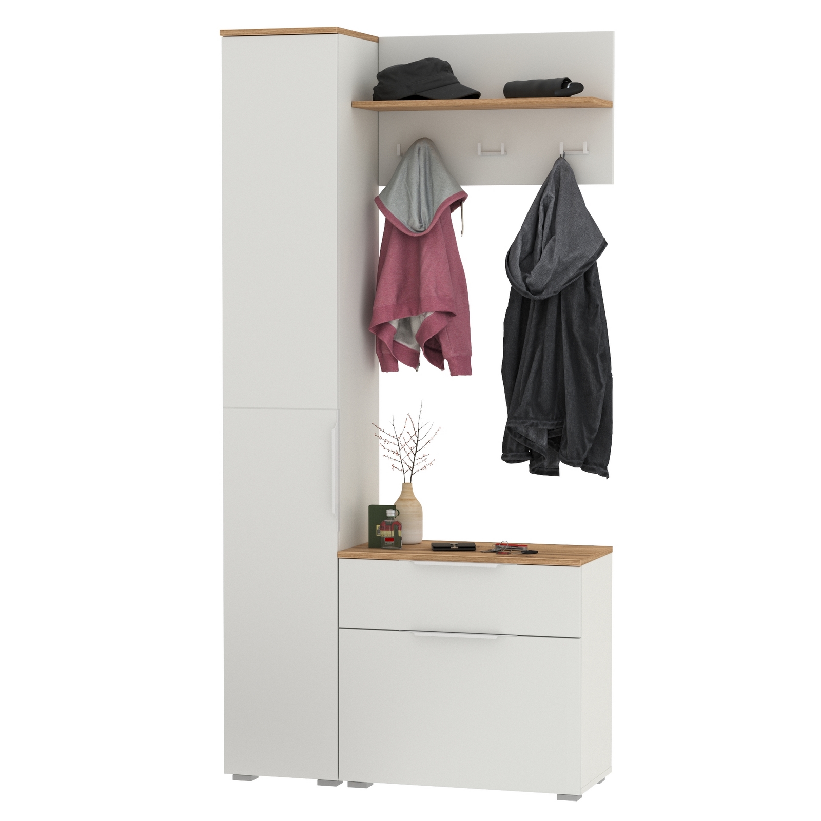 Шкаф-пенал с обувницей и вешалкой для оджеды с полкой Октава – современная компактная прихожая.