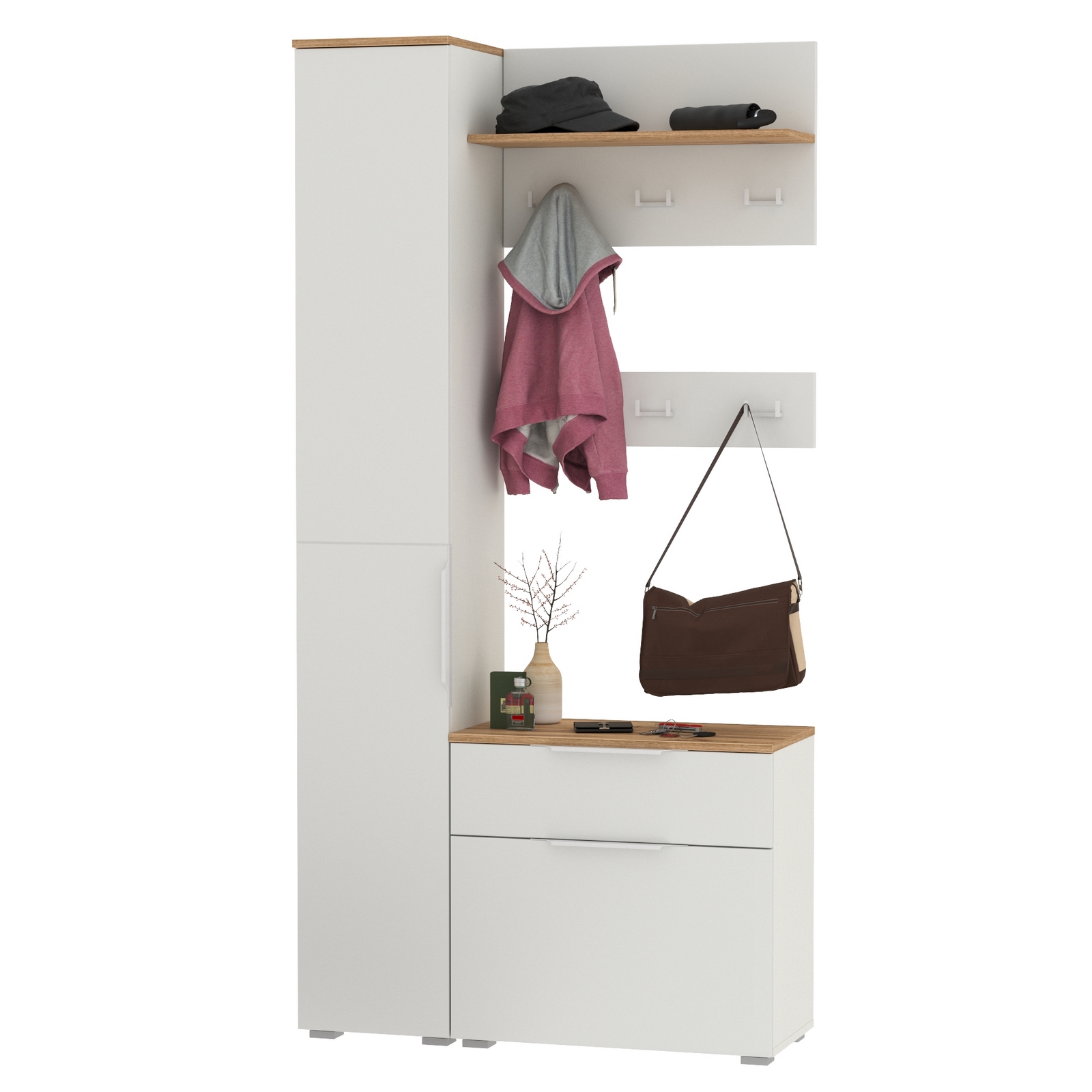 Тумба для обуви с пеналом для одежды и двумя вешалками Октава – современная компактная прихожая.
