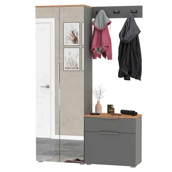 Отзывы о Столплит Шкаф две двери с зеркалами с обувницой и вешалкой для одежды Октава Графит