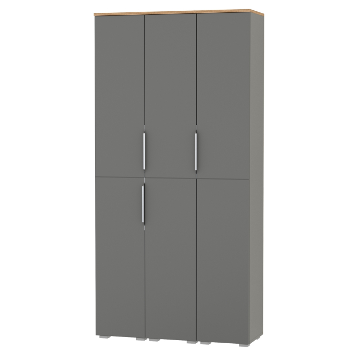 Комплектация состоит из трех пеналов Октава 13.228 объединенных в стеночку. За распашной дверкой каждого пенала Октава 13.228 (в комплектации 3 единицы) расположены 5 полок из ЛДСП для размещения Ваших головных уборов и обуви. Универсальная сборка - сторону открывания двери Вы определяете при сборке. Максимальная нагрузка на каждую полку составляет 8 кг. Металлические ручки выполнены из алюминиевого профиля надежно крепятся и удобно ложатся в руку. Визуально может показаться, что мебель без ручек. Такая видимость создается из-за того, что профиль крепится к торцовой части дверей дополняя общюю композицию. Мебель оснащена пластиковыми опорами серого цвета.