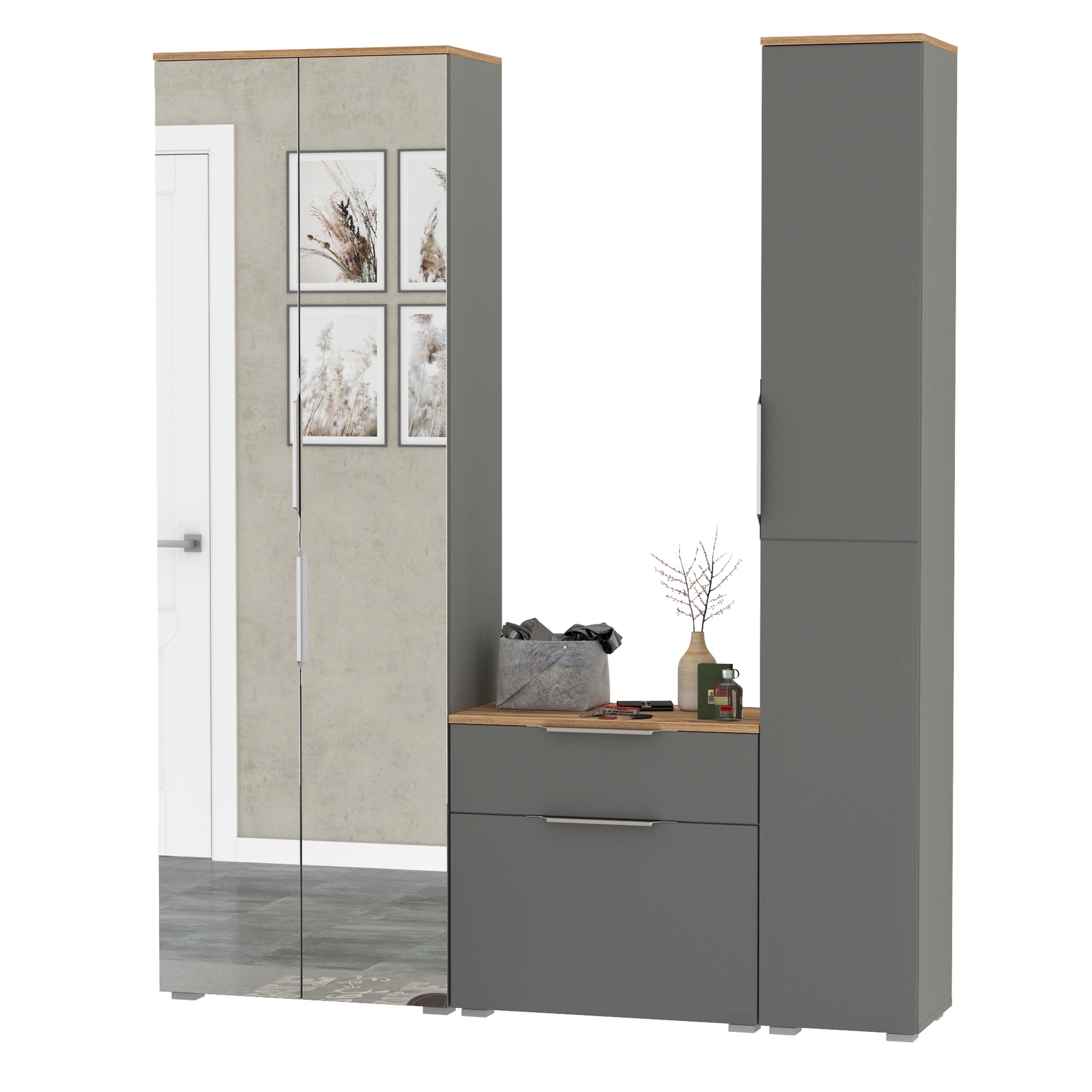 Отзывы о Столплит Шкаф с зеркалом и пенал с обувницей Октава Графит