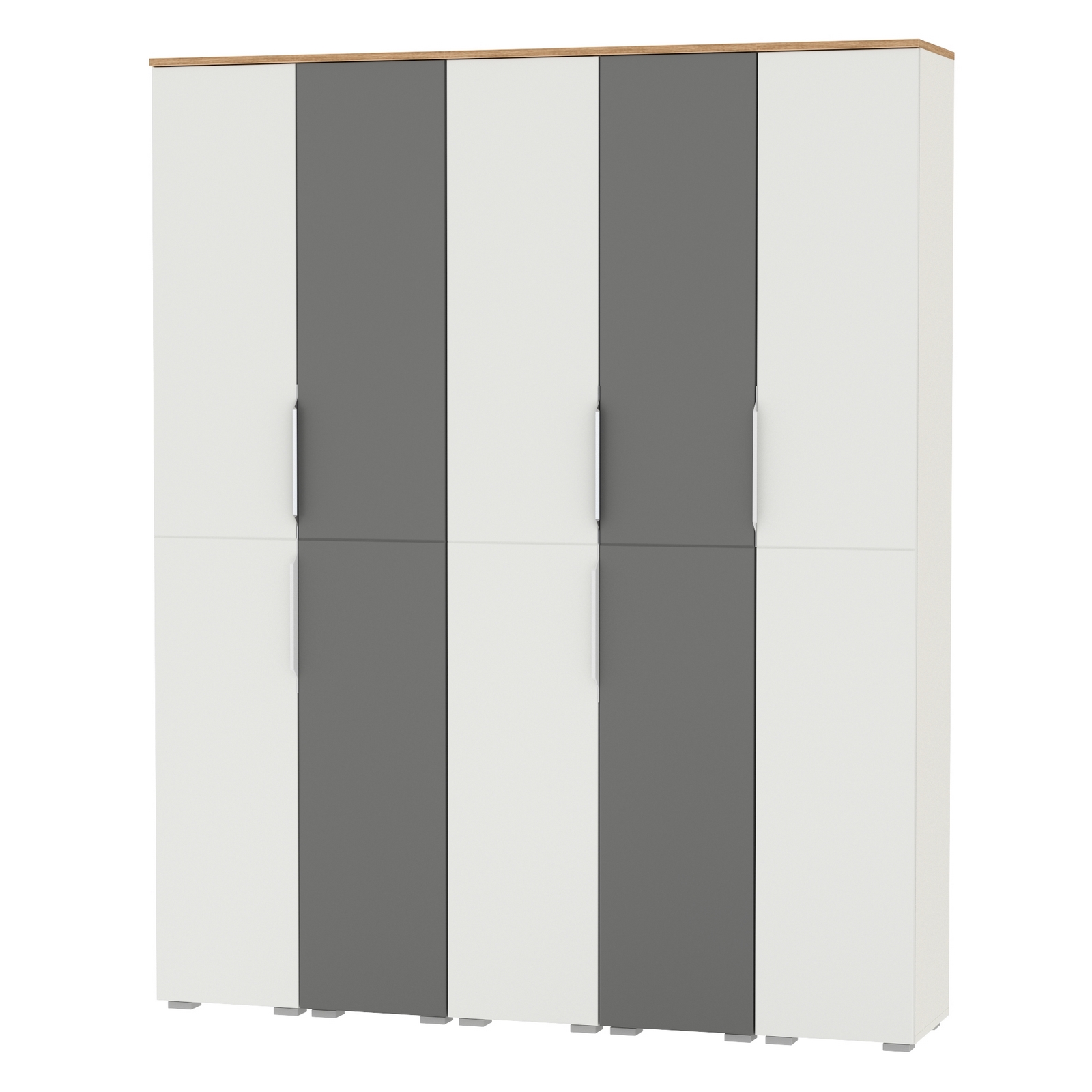Выполнена в цвете: белый шагрень/серый графит/дуб золотой.