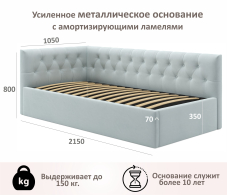 • Укомплектована основанием - ортопедическими ламели на металлической рамке. Анатомические латы работают независимо, подстраиваясь под изгибы тела.