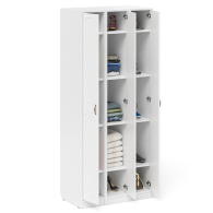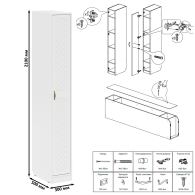 Комплектация состоит из трех узких пеналов объединенных в единый блок. Классический узкий пенал, за распашной дверью которого расположены 4 полки. В комплектации три пенала. Сторону открывания дверей Вы определяете при сборке, что расширяет возможности удобной меблировки прихожей.