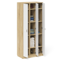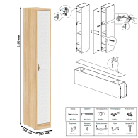 Комплектация состоит из трех узких пеналов объединенных в единый блок. Классический узкий пенал, за распашной дверью которого расположены 4 полки. В комплектации три пенала. Сторону открывания дверей Вы определяете при сборке, что расширяет возможности удобной меблировки прихожей.