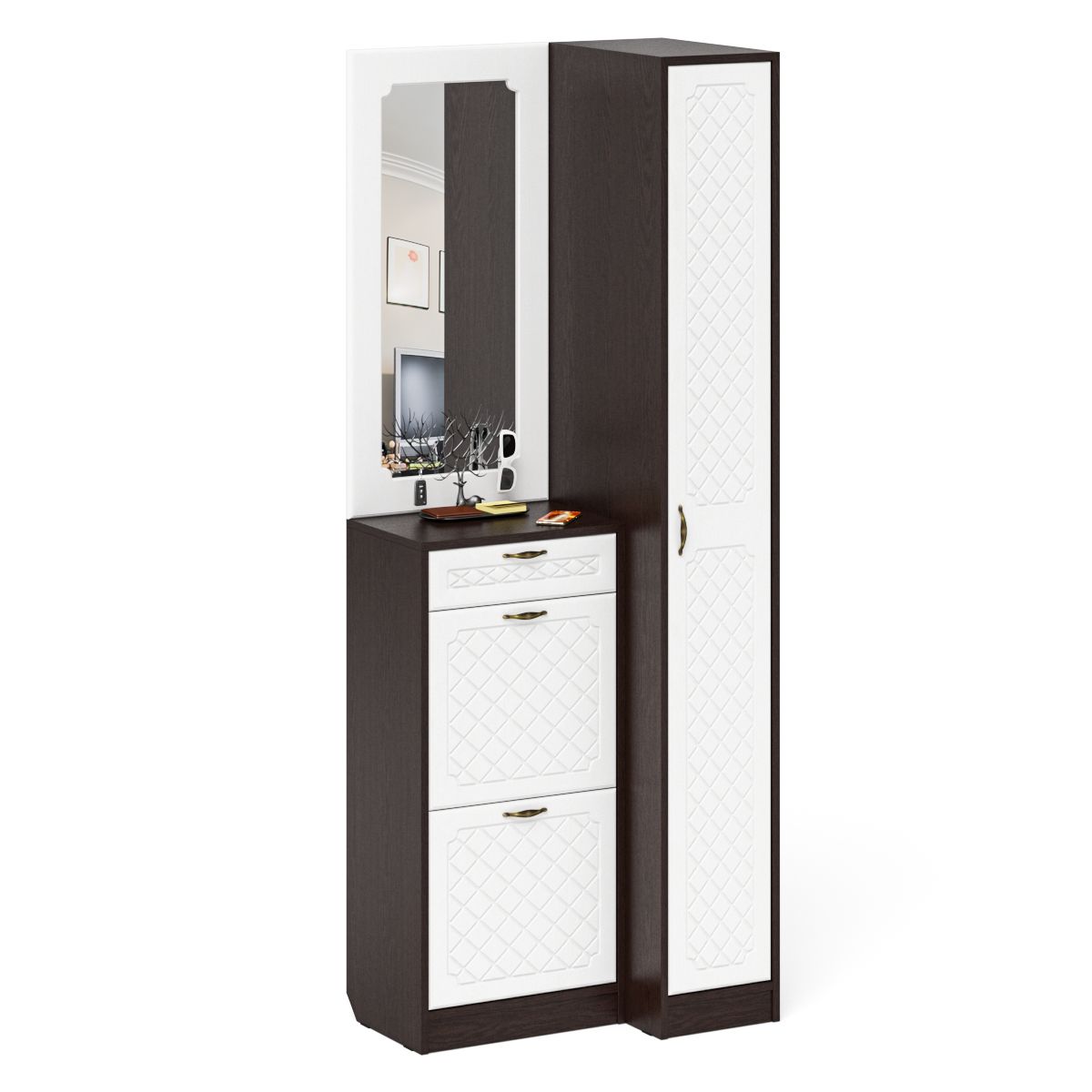 Отзывы о Столплит Пенал для прихожей П-6-500 и высокая обувница с зеркалом фрезеровка ромб Белый/Венге