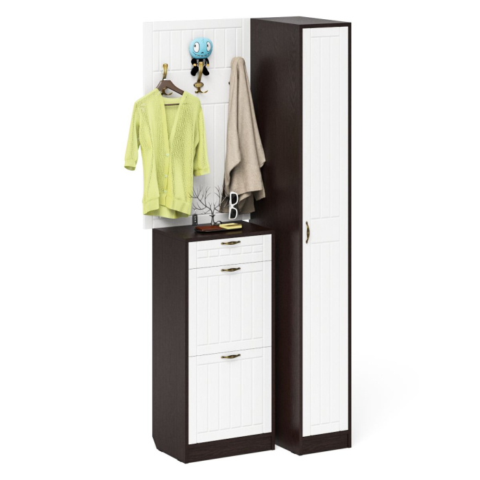 Отзывы о Столплит Высокая обувница с вешалкой с крючками и пеналом П-6-500 для прихожей фрезеровка прованс Белый/Венге