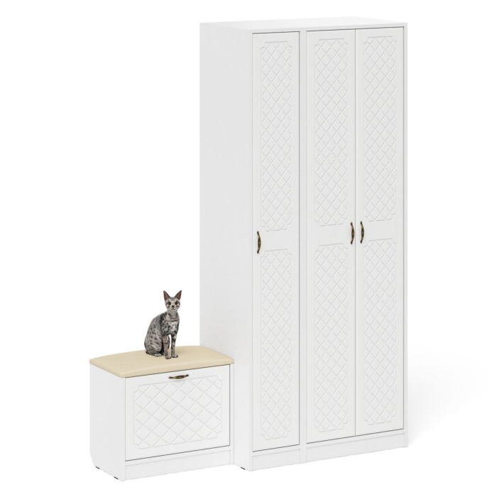 Отзывы о Столплит Шкаф с пеналом и тумбой для обуви с мягким сиденьем П-6-500 фрезеровка ромб Белый шагрень