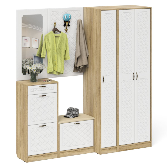 Отзывы о Столплит Набор модульной мебели для прихожей П-6-500 № 51 фрезеровка ромб Белое дерево/дуб сонома