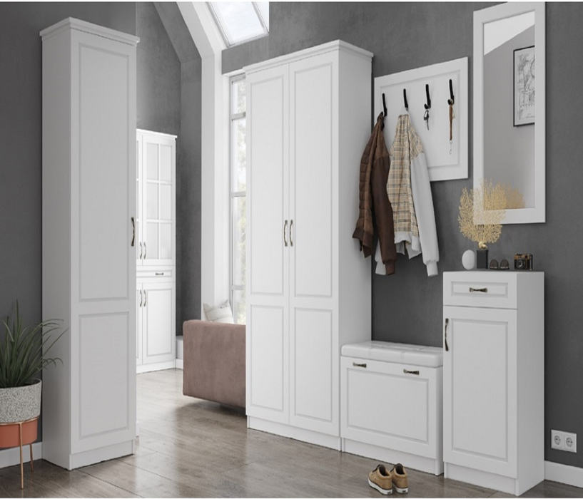Модульная коллекция Апполия – идеальное решение для тех, кто любит классическую обстановку. Корпус мебели выполнен из ЛДСП в белом цвете с тиснением, фрезерованный фасад – из МДФ в пленке ПВХ. Уточненные ручки, надежная фурнитура и возможность укомплектовать шкафы карнизом – несомненные преимущества серии.