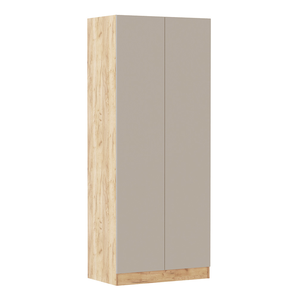 Шкаф для белья и одежды Руэлла оснащен двумя распашными дверцами, за которыми находятся полки для вещей и хромированная штанга для деликатной одежды на плечиках. На верхней полке сможете организовать место хранения для аксессуаров или коробок с сезонными вещами. Гармоничное сочетание цветов корпуса и фасадов идеально впишется в современный дизайн прихожей.