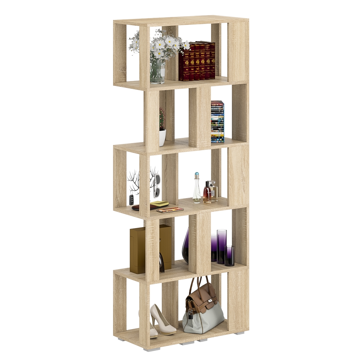 Комплект их двух стеллажей, объединенных в единый блок, визуально максимально легкая с прекрасным доступом к каждой полечке, идеально подойдет и для книг и журналов и как стенд для поделок Вашего ребенка. Комплект их 2-х стеллажей конструктивно представляет из себя 5 ярусов с четырьмя полочками с доступом с четырех сторон. Комплект их 2-х стеллажей установлен на пластиковые опоры высотой 20 мм, защищающие покрытие пола от повреждений.