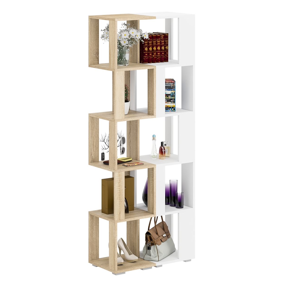 Комплект их двух стеллажей, объединенных в единый блок, визуально максимально легкая с прекрасным доступом к каждой полечке, идеально подойдет и для книг и журналов и как стенд для поделок Вашего ребенка. Комплект их 2-х стеллажей конструктивно представляет из себя 5 ярусов с четырьмя полочками с доступом с четырех сторон. Комплект их 2-х стеллажей установлен на пластиковые опоры высотой 20 мм, защищающие покрытие пола от повреждений.