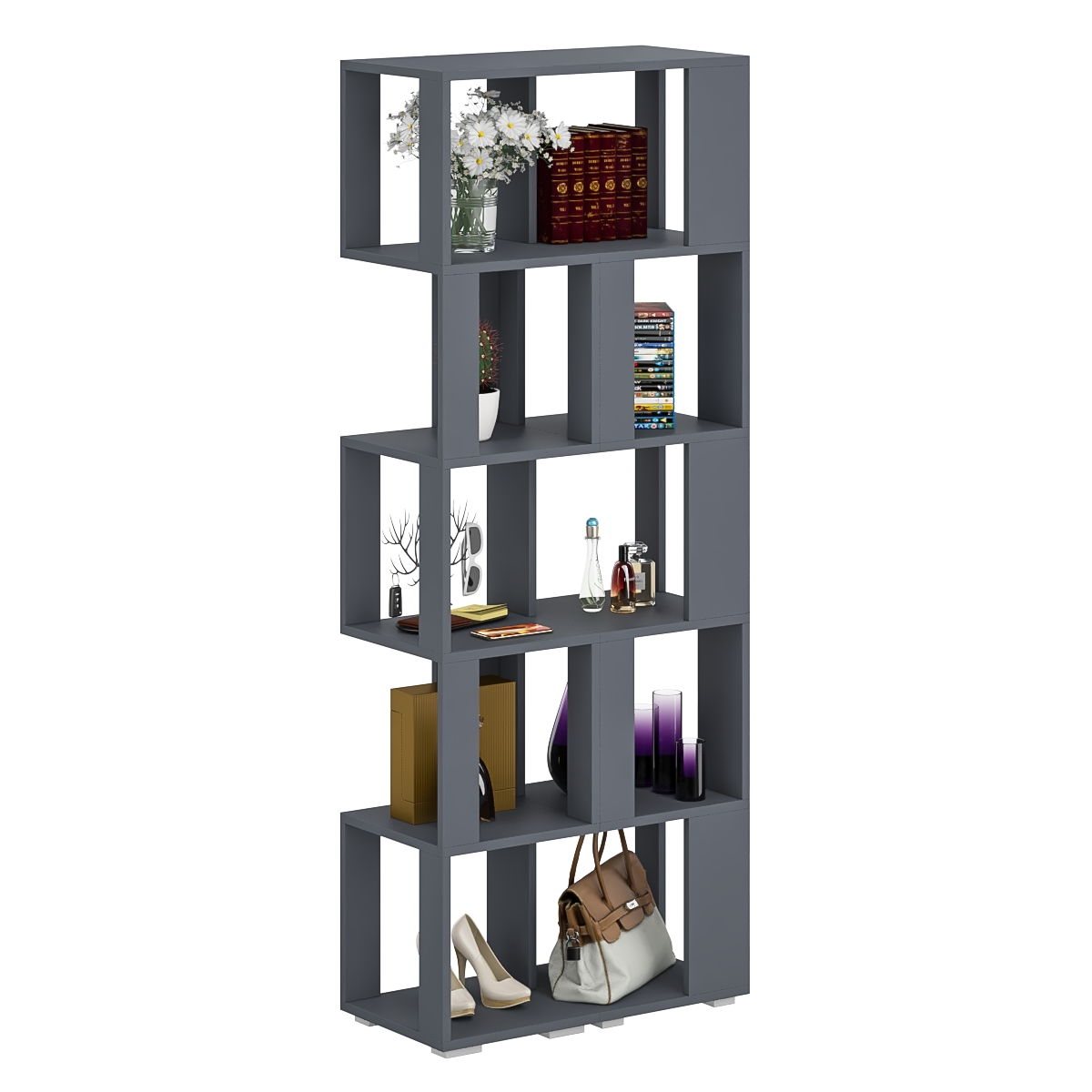 Комплект их двух стеллажей, объединенных в единый блок, визуально максимально легкая с прекрасным доступом к каждой полечке, идеально подойдет и для книг и журналов и как стенд для поделок Вашего ребенка. Комплект их 2-х стеллажей конструктивно представляет из себя 5 ярусов с четырьмя полочками с доступом с четырех сторон. Комплект их 2-х стеллажей установлен на пластиковые опоры высотой 20 мм, защищающие покрытие пола от повреждений.